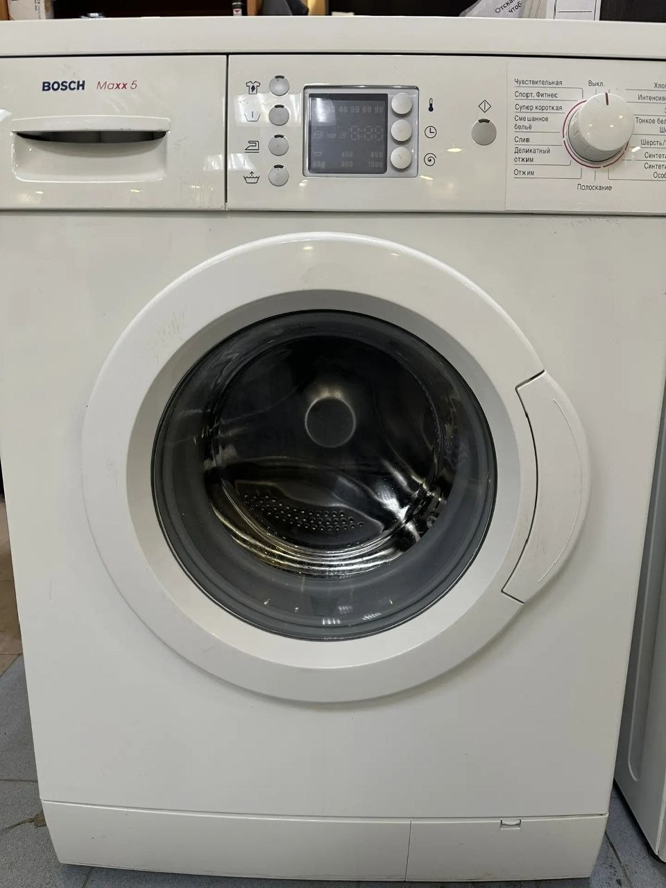 Тип программ деликатная ткань, интенсивная стирка, легко гладить, отжим, полоскание, предварительная стирка, синтетика, слив, смешанное бельё, хлопок/лён, шерсть